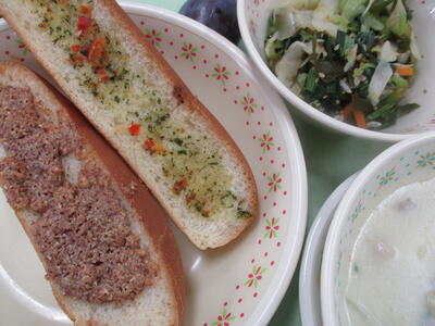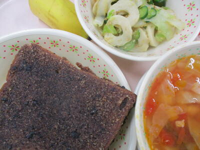 ※「ココアトースト」「胡麻チクサラダ」「ミネストローネ」「バナナ」