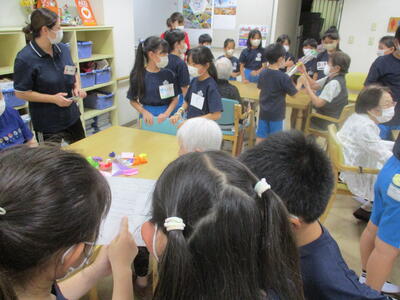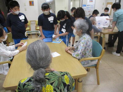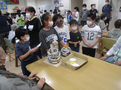 今週は4年生がお隣のデイサービスさんと交流会を行っています。