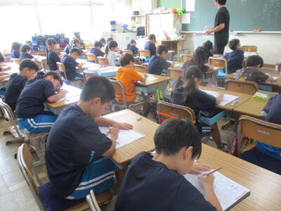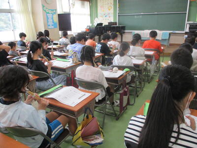 3年生 音楽 リコーダーのテスト中! 緊張しますな。