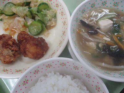 ※「油淋鶏(ユーリンチー)」「キムチ」「中華スープ」美味しく召し上がれ!