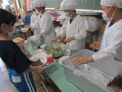 6年生は小学校最後の給食です。 「岩小カレー」、忘れないでね。