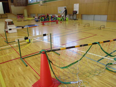 1年生 たいいく 「蹴球」 ドリブル・リレー がんばれ!