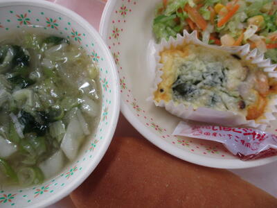 ※「パンプキンシチュー」「ほうれん草のオムレツ」「コールスローサラダ」
