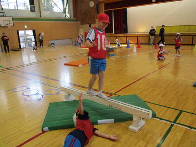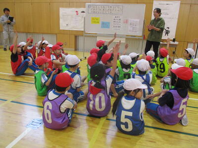 はなのき・もものき 体育 「Tボール」 ルールの確認中!