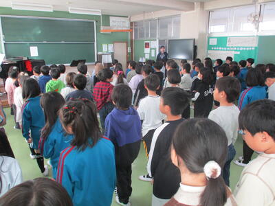 たくさんの児童が入賞しているので、その場で立っての紹介もありました。