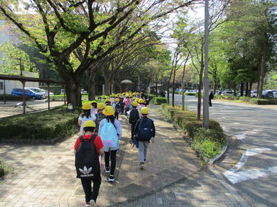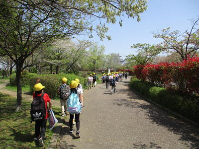 はなのき学級、もものき学級のみんなで歩いて岩名中学校にい行きました。