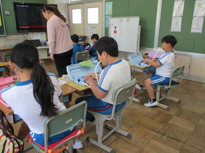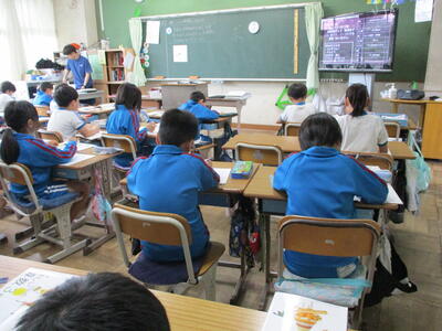 5年1組では道徳、5年2組は体育、6年1組は社会科。