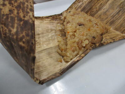 秋の味覚焼は、今が旬で、脂がのったボラという魚を使っています。ソースには、きのこ、くり、にんじんが入っています。