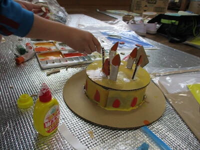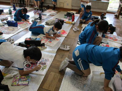はなのき学級ともものき学級の大きな作品が飾られました。力作です!!