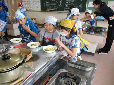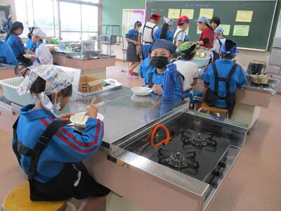 6年生 家庭科 「調理実習」 野菜炒めと・・・、