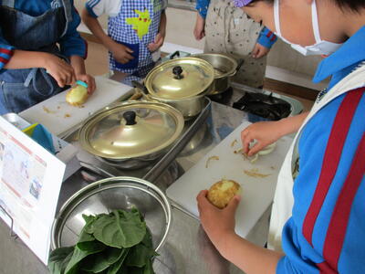 5年生 林間学校事前学習 かまど作りですな?