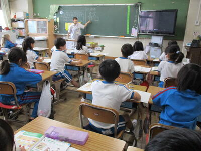 巧みな話術! おッ! 紙芝居じゃないか! (2年生教室)