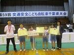 岩木小は、5年生自転車部の代表が選手として参加しました。交通規則に関する筆記テストと安全走行テストが行われました。警察の方や交通安全協会の方が見ている中、とても緊張した様子でがんばっていました。見事、団体の部で優勝となりました。すごいことです。また、個人の部でも優勝と準優勝となりました。日頃から、交通規則を勉強したり、自転車の乗り方を練習してきた成果です。