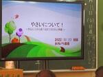今日は、まめいち農園の瀬能さんから野菜について「作るところから食べるまで」(ほうれん草)のについて、直接お話を聞きました。愛情こめて育てた野菜でみんなが幸せになってほしい、野菜を食べて笑顔になってほしい。そのためには、環境に優しい、安心で安全な野菜な野菜作りをしている。など、たくさんの写真も見せていただきました。食品ロスの話もあり、終わりに、食べられるのに、規格外といて廃棄になっていまうニンジンをいただきました。