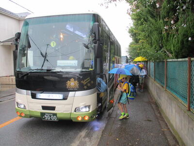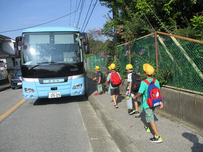 3年生 今朝は1組とはなのき・もものきが「消防署」「警察署」見学にシュッパツ!