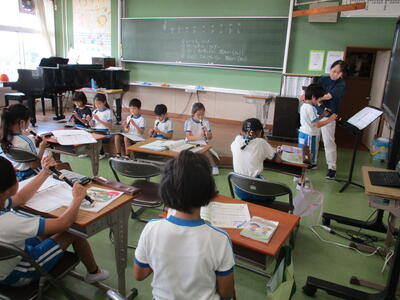 5年生 音楽 「アフリカン・シンフォニー」を吹奏中!
