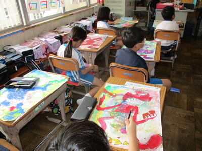 朝からアラートが発令されましたので、夏休み前「全校集会」は校長室から各教室に配信して行いました。