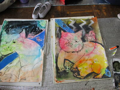 1年生 廊下掲示物 さぁ、どんな場面を絵にしたのかな?