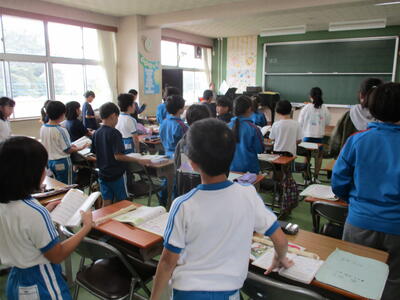 4年生 朝の会 「学年合唱」練習中! いいぞぉ!