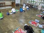 1年生は体育館で学級ごとに行いました。