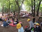 1年生が川間駅南中央公園で、「どんぐりランド秋遊び」を楽しみました。学年全員でまず、「秋の言葉のおとのかずチームづくり」で遊びしまた。「さ・つ・ま・い・も」の合図で5人グループをつくったり、「ど・ん・ぐ・り」の合図で4人グループを作ったりしました。次は、学級ごとに、ネイチャー遊び「どんぐりひろい・あきのビンゴ・あきのはっぱの木づくり」を楽しみました。お昼は、おにぎり弁当。自分でにぎったおにぎりをうれしそうに友達と食べました。
