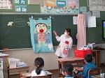 野田市の防犯推進委員の方が、「青パト」や「まめバン」の紹介をしながら地域の安全を守っていることのお話をしてくださいました。また、子どもたち自身が自分をまもるための行動や大きな声の出し方など、具体的に教えてもらいました。