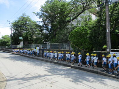 3年生 今朝は1組とはなのき・もものきが「消防署」「警察署」見学にシュッパツ!