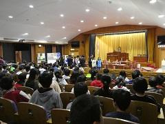 昨年度,市長さんから野田市の子ども達へのアンケート調査がありました。その中で「市長さんと会って話したい」,という岩木っ子がたいへん多かったため,この集会が開かれました。「野田市をどんな市にしたいですか?」「どうして市長さんになったのですか?」などの質問に,市長さんが回答してくださいました。みんな一生懸命聞いていました。市長さんが身近に感じられた貴重な時間となりました。