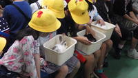 ふれあい動物教室では,ウサギやひよこ,モルモットと触れ合いました。