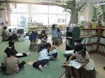 本のはらっぱで読書をしている子どもたち。集中していました。