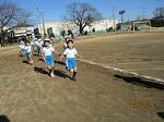 朝のうちは気温が低く、校庭のあちこちが凍っていました。走るころには、寒さもやわらぎました。2年生と3年生は、グランドがぬかるんでいたため、コースを変更して実施しました。