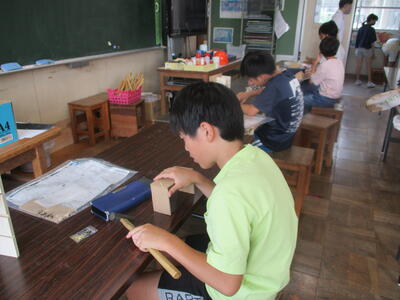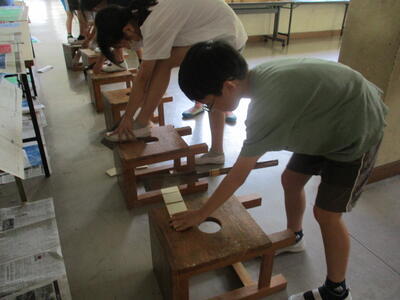 6年生 図工 お! のこぎりですな! がんばれ~!