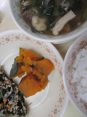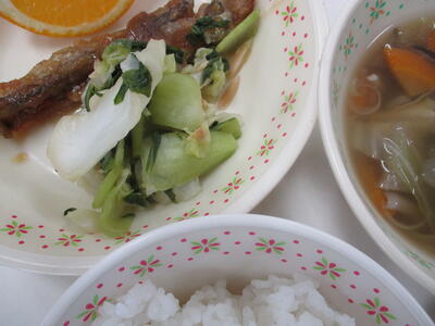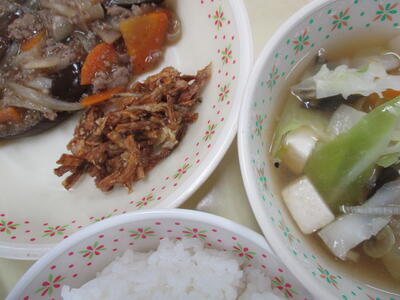 ※「岩小夏野菜カレー」「ひじきのうめドレッシング和え」「冷凍みかん」