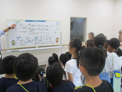 江戸川の水が、どのようにして飲料水になるのかを学んでいます。