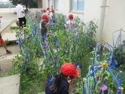 1年生 アサガオの観察 たくさん花が咲くようになったね!