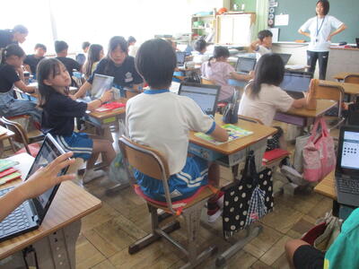 1年生 と 6年生 「クロームブック」の使い方 協働学習中!
