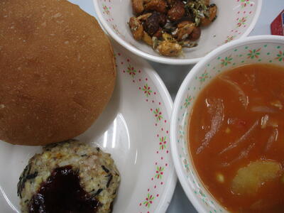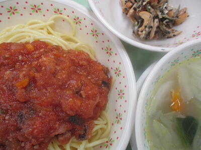 ※「夏野菜のミートソース」「実だくさんスープ」「アーモンドカル」「レモンゼリー(一口)」