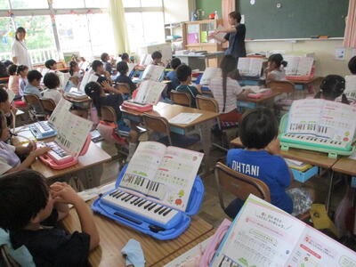 2年生 音楽 鍵盤ハーモニカですねぇ。 演奏は「かえるの合唱」ですか?