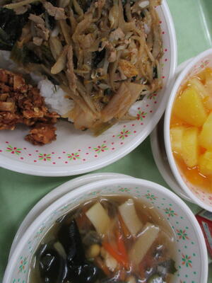 ※「和風ビビンバ」「中華風大豆わかめスープ」「キャラメルナッツ」「フルーツミックス」