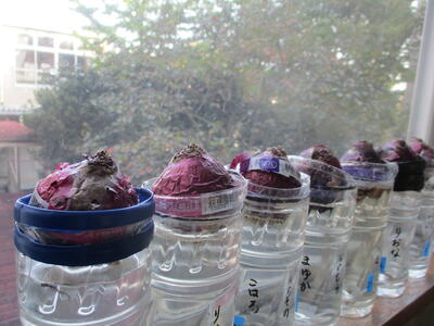「球根」があらわれると、「冬」だなぁって感じがします。(1年生廊下)