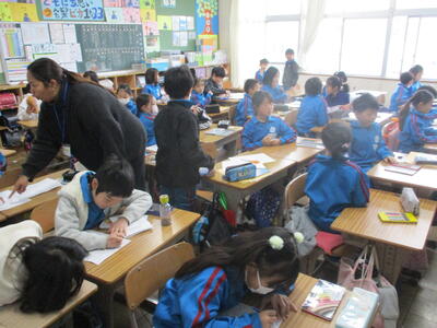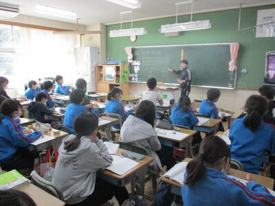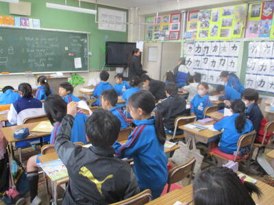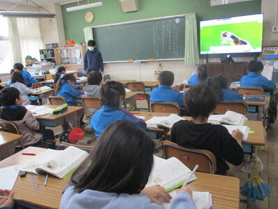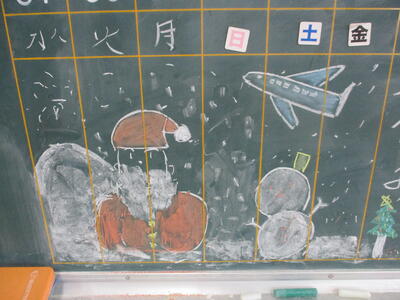 3年生教室 背面黒板 どなたが描いたの?「みんなです」ほぉ!