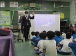 学芸員の笹川さんが講師です。野田市の偉人鈴木貫太郎さんについて、クイズを中心に紹介してくださいました。また、貫太郎さんが持っていた資料に実際に触れさせてもらいました。貫太郎さんの等身大パネルも登場し、楽しく、あっというまの1時間でした。貫太郎さんは、よく勉強して、まじめな性格で、おこらない人だったそうです。貫太郎さんの身長は180㎝、好きな食べ物はカステラ、好きな遊びはトランプ。貫太郎さんのいろいろなお話を聞かせてもらいました。