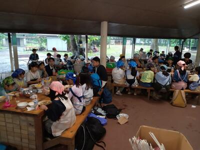 あいにくの雨ですが、これから元気に飯盒炊爨にいどみます!