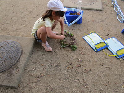 1年生が自分たちで育てたアサガオをリースに作り替えていました。
