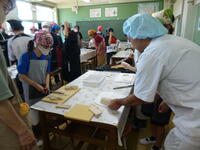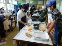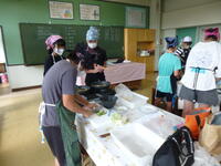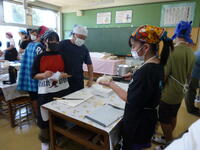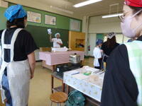 保護者の皆様にお集まりいただき、川間小の給食の様子を見ていただくと共に人気のメニューを試食していただきました。