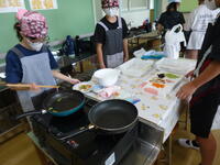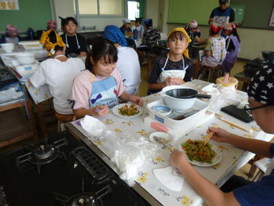 6年生が家庭科の学習ですきな具材をつかった野菜炒めをつくりました。