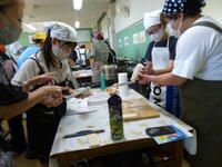 6年生が 「かまぼこの八木橋」さんを講師に迎えて、親子で仲良くかまぼこ作りをしました。