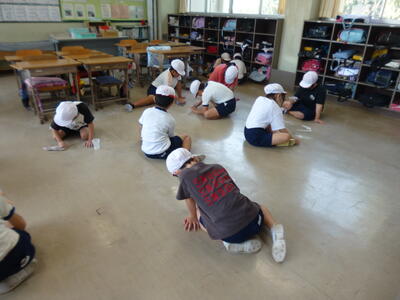 なかよし学級では、朝の体力作りでマット運動をしました。上手に起き上がれましたね。