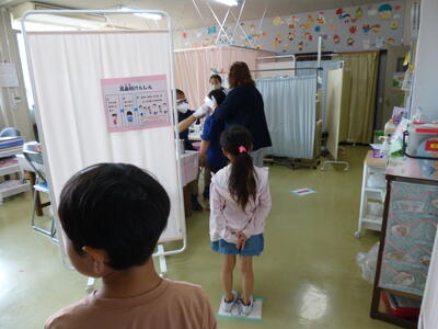 耳鼻科検診を行いました。お医者さんにみていただきます。