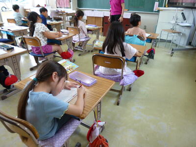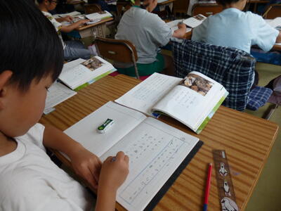 5年生は書写の学習中です。字のバランスを考えて書いていますね。